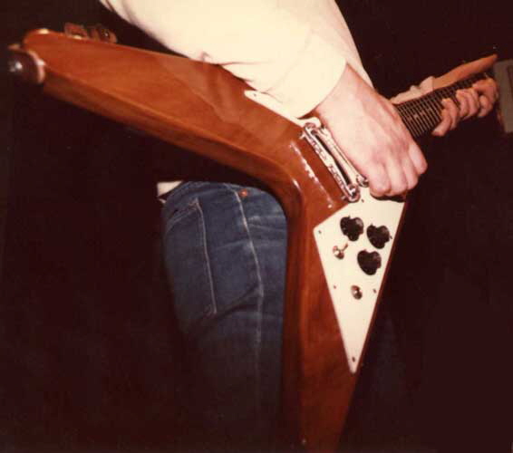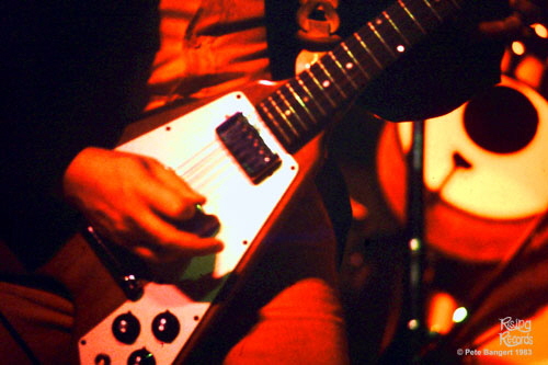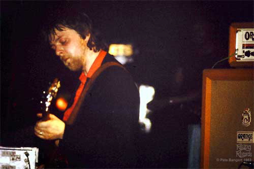 Live, Pete plays a Kahler equipped Gibson Flying ‘V’ with an Axon guitar synth, through a sophisticated rack setup using Mesa Boogie amplification. But for the live version of the jam-band Pete uses a basic Orange amp with minimal pedals and no synth. Back to basics...